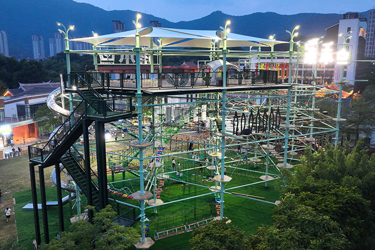 鉆石塔拓展樂園是一項勇敢者的戶外休閑娛樂項目,它通過在鋼結構或木結構立柱間設置并搭建各種難易不同、風格迴異、超強刺激的關卡障礙活動環節將立柱連成一條線路,玩家需要通過懸空橋梁、網道、步道、木桶、秋千、索道和其他趣味環節等方式進行樹木間的探險,通過爬、滑、游、跨、跳、飛等動作越過所有障礙,到達終點,讓你體驗高空墜落與自由滑翔的快感,感受攀爬與穿越的刺激。